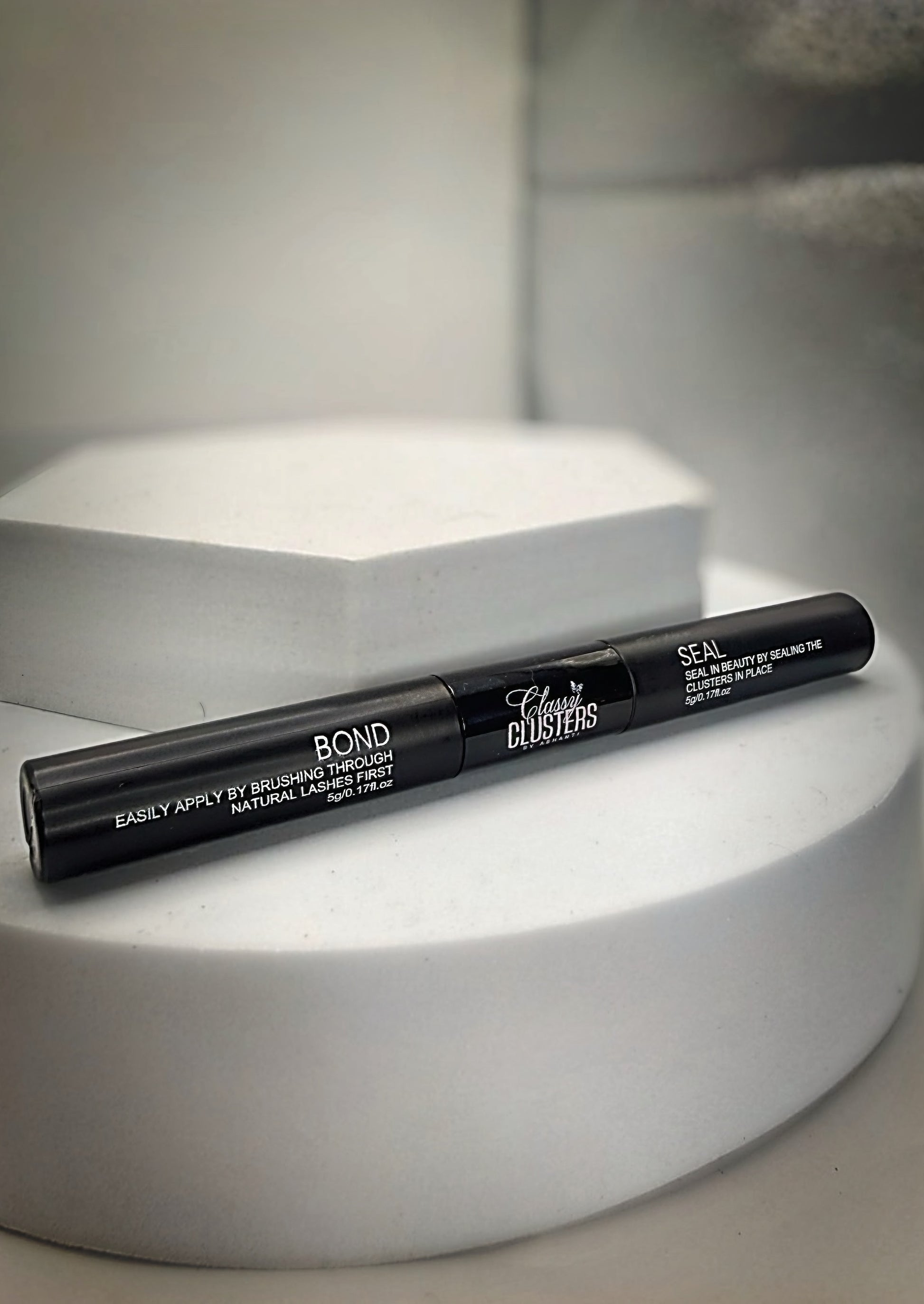 The Bond side applies smoothly to your natural lashes, creating the perfect base for cluster placement without heaviness or mess. Once lashes are applied, finish with the Seal to lock clusters in place, eliminate tackiness, and extend wear for a clean, polished look.